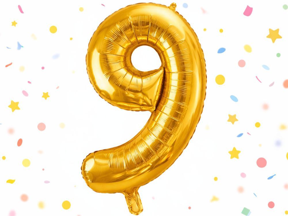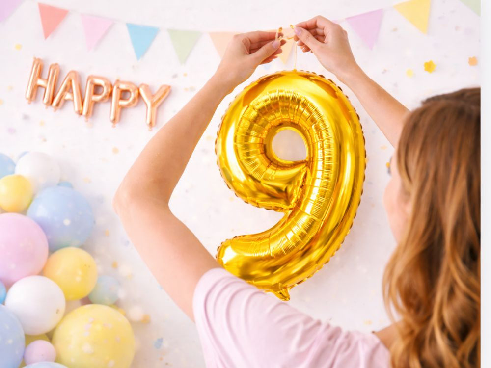 Szám alakú lufikkal, például arany 9-es lufival.